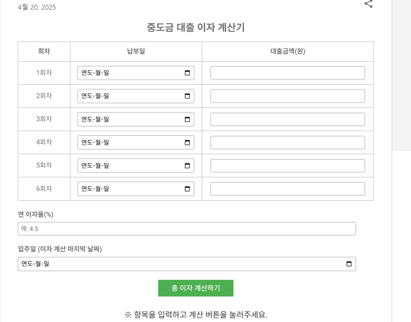 제가 직접 만든 계산기도 있으니, 아래 조건만 넣으면 총 이자 예상 금액을 바로 확인할 수 있어요.
