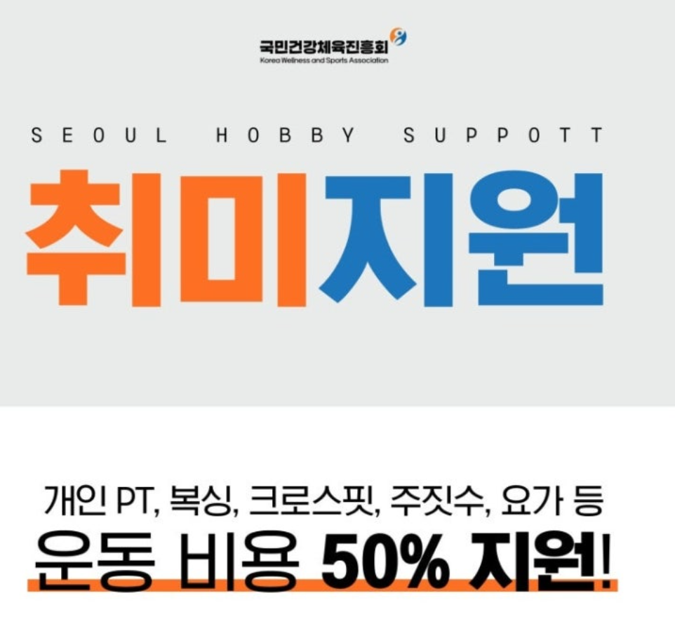 서울시와 국민건강체육진흥회가 협력하여 시민의 건강한 여가 생활을 위해 진행 중인 운동비 지원 사업입니다.
